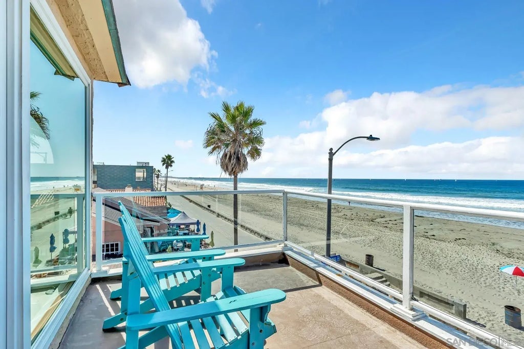 Experience the Pinnacle of Coastal Living at 3507 Ocean Front Walk in Mission Beach. Welcome to your dream penthouse in the heart of San Diego’s most coveted beachfront location! This stunning corner-unit condo offers 1,799 square feet of luxurious single-level living, featuring 3 spacious bedrooms and 3 full bathrooms, designed for both style and comfort. Step into an open and sunlit living space where oversized windows frame breathtaking ocean views from the living room, dining area, and kitchen. Enjoy uninterrupted vistas of the Pacific from La Jolla in the north to Point Loma to the south, filling every room with natural light and offering panoramic water views throughout the day. The primary suite is a peaceful retreat, offering ample space, serene ambiance, and access to a private east patio perfect for morning coffee or Bay views. The seamless indoor-outdoor flow extends to your own terrace, ideal for soaking up the sun, entertaining guests, or savoring cool ocean breezes in the evening. This exceptional home includes the convenience of an in-unit washer and dryer, assigned garage parking, and two oversized outdoor spots, making daily life easy and stress-free. Located in a prime corner walk-up building, this condo offers an unmatched blend of contemporary style, comfort, and modern living—all within steps of the ocean. Don’t miss the chance to embrace luxury oceanfront living at its finest. Schedule your private viewing today and make 3507 Ocean Front Walk your coastal paradise!