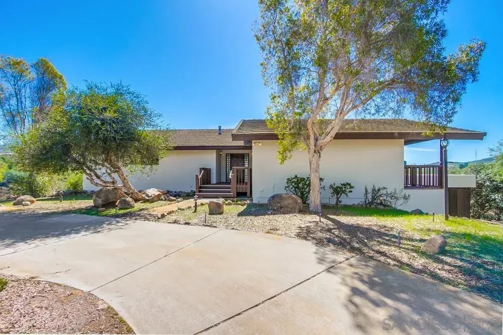Welcome to 20503 Fortuna Del Sol This exquisite custom home is perched atop 2.55 acres of prime Elfin Forest land, offering panoramic views that will take your breath away. Nestled in the heart of this serene community, the property lies within the coveted Rancho Santa Fe School District, providing both tranquility and top-tier education. As you enter through the front door, you'll be greeted by a spacious upper level featuring three generously sized bedrooms. Each room is complemented by large decks that capture the stunning vistas and flood the interiors with natural light. The master suite is accompanied by a massive office with its own private storage room—ideal for those who work from home or require additional space. The main level is a true showstopper. The grand staircase leads to a welcoming living area with an abundance of natural light, highlighted by a beautiful wood-finished ceiling and side wall, adding warmth and character to the space. The gourmet kitchen is a chef’s dream, complete with ample space to entertain. Enjoy meals in the inviting dining area, positioned perfectly to maximize the incredible views outside. Also located on the lower level is a fourth bedroom, offering its own ensuite bath, perfect for guests or multi-generational living. A massive laundry room adds convenience to this already well-appointed home. Just minutes away from downtown San Elijo Hills, shopping, and a variety of hiking and equestrian trails, this location offers the perfect balance of privacy and accessibility. Plus, with no HOA or Mello Roos. SEE SUPPLEMENT