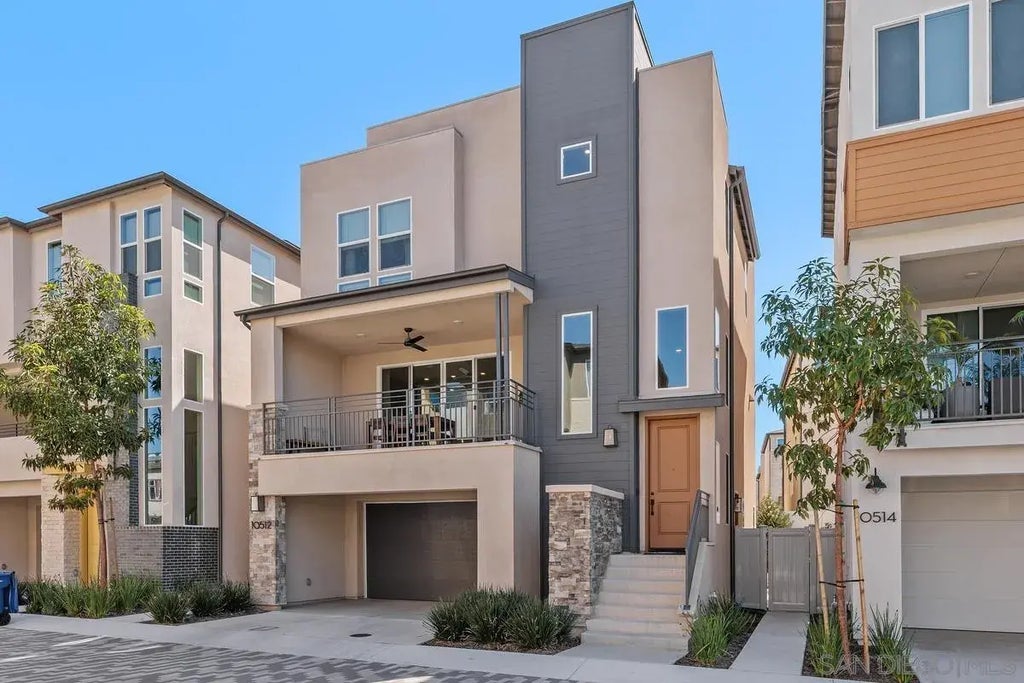 Rarely available former MODEL home in the highly sought-after Citrine at 3Roots in Sorrento Mesa. As a model home, it was designed to impress and showcase the highest-quality finishes and upgrades a builder offers, blending the modern luxuries of newer construction with premium craftsmanship and contemporary design. Located in Citrine, where homes live like single-family residences, this completely detached home features a rare pull-in driveway, and a two-car garage with EV charging. This home boasts one of the larger backyard spaces in Citrine, with a spacious deck and room to entertain. Smart home technology enhances everyday living, featuring a whole-house audio system and advanced air and water filtration for a healthier home. Inside, the thoughtfully designed tri-level layout includes a first-floor bedroom and full bath, ideal for guests or multigenerational living. The second level features a gourmet kitchen with top-of-the-line appliances, custom cabinetry, and elegant countertops, seamlessly flowing into the open living and dining areas. Upstairs, the primary suite is a serene retreat, along with a spacious third bedroom. Owned solar, grandfathered into NET Metering 2.0, ensures long-term energy savings. In the vibrant 3Roots community, residents enjoy resort-style amenities, including a state-of-the-art fitness center, resort-style pool, playgrounds, miles of scenic trails, and acres of parks. This home is also close to UCSD, UTC, Sorrento Valley, Torrey Pines, and La Jolla’s beaches, offering offering a perfect blend of luxury, convenience, and sustainable living.