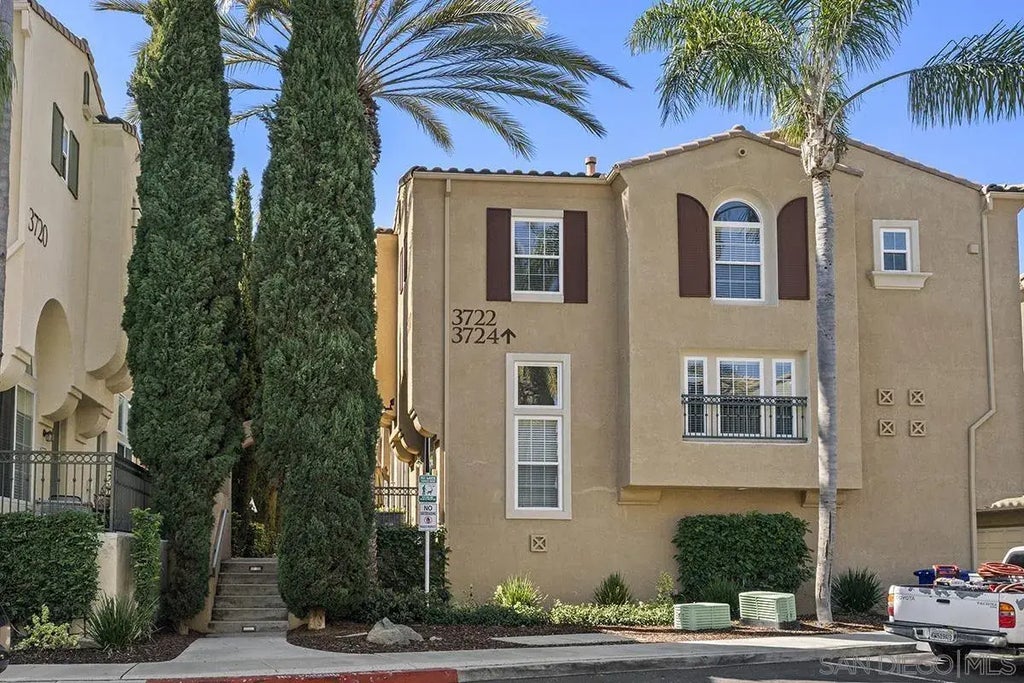 Light, bright, and airy end unit townhome in the Alluring Andalucia coastal village of Carmel Valley. Boasting high volume ceilings throughout this lovely home is not short in upgrades from new interior designer paint, granite countertops, all hard surface flooring (no carpet) including wood laminate, stainless steel appliances (new refrigerator and newer dishwasher and range/oven), Crown moulding throughout the interior of the home, updated baseboards, dark cherry cabinets, surround sound, epoxy flooring and electrical car charger in your two car garage. Split level floor plan with your grand formal living room upon entry and convenient coat closet by entry way. Second level upon entry features your Chef's kitchen with pendant lighting open to your formal dining and family room areas with a cozy fireplace. Spacious primary bedroom with large walk-in closet in addition to two open bedrooms with a full bathroom in between (Jack-and-Jill style) on the upper level. Stacked washer/dryer located in your attached garage. Plenty of windows for natural lighting throughout. Nearby award winning Del Mar Union School District and San Dieguito Union High School District! Just minutes to shopping (One Paseo, Del Mar Highlands, and Piazza Carmel), restaurants, groceries, banking, Carmel Valley Recreation Center and Library, and much more. Close proximity to 56, 5, and 805 freeways. Numerous hiking/biking trails and open space parks and within close distance to lovely San Diego beaches.