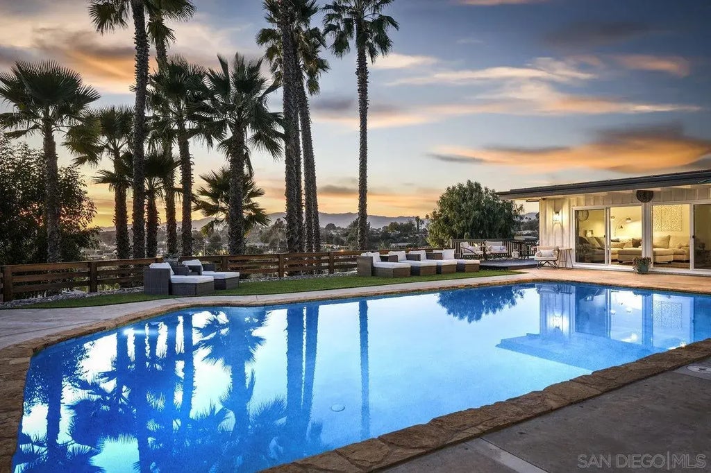 Welcome to your dream home in beautiful Fallbrook, CA! This stunning 4-bedroom, 4-bathroom, 3-car garage modern farmhouse with a circle driveway spans over 2,800 square feet and sits on more than an acre of private, fenced land. Enjoy breathtaking mountain views and incredible sunsets from your expansive deck that spans the entire back of the home. This single-story home is an entertainer's paradise, featuring a covered poolside patio, a spa-inspired backyard with a covered pergola, a pool bath, a shower, and changing rooms. The property offers plenty of space to lot split or add a junior ADU and ADU, making it perfect for extended family or rental income. The property boasts over half an acre of frontage, complete with an 8x12 shed on a concrete slab, two dog kennels on concrete slabs, two chicken coops, and a variety of fruit trees, including lemon, lime, and orange. An ancient olive tree and nearly two dozen palm trees add to the charm of this incredible property. Recent upgrades totaling over $250K include solar panels, pool solar heating, pool resurfacing, new pool plumbing and filter, whole-home custom gutters, new plumbing drains from the home to the road, new A/C, a new tankless hot water heater, garage floor epoxy, drip irrigation, landscape lighting, and much more. The property is newly fenced with white vinyl fencing and includes a double-gated RV parking area with hook-ups. Don't miss the opportunity to own this exceptional home that combines luxury, comfort, and endless possibilities. Schedule a viewing today and experience the best of Fallbrook living!
