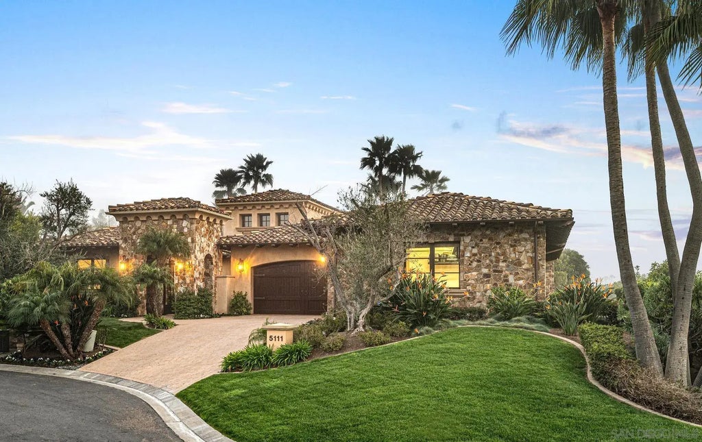 Stunning Rancho Pacifica single-story Mediterranean Contemporary set on a serene cul-de-sac features the perfect mélange of old world craftsmanship and modern design. Step through the manicured entry and courtyard and be enveloped in luxury and beauty in spaces that feel intimate while featuring voluminous, double height ceilings. Stone floors and rich woods provide elegant materiality found in all living areas, from the gourmet kitchen and private dining room, to the sumptuous primary suite with grand fireplace and private gym. Select a fine vintage from the temperature-controlled wine room and head through sliding glass doors to the dreamy back yard with endless sky and no neighbors in sight. Enjoy lounging by the recently-resurfaced pool and spa, dining at the eat-in BBQ center, or cuddling by the outdoor fireplace on cool San Diego nights. This beautiful single-level home offers a rare opportunity to embrace a lifestyle of luxury and comfort in one of San Diego's most coveted locations—your dream sanctuary awaits!