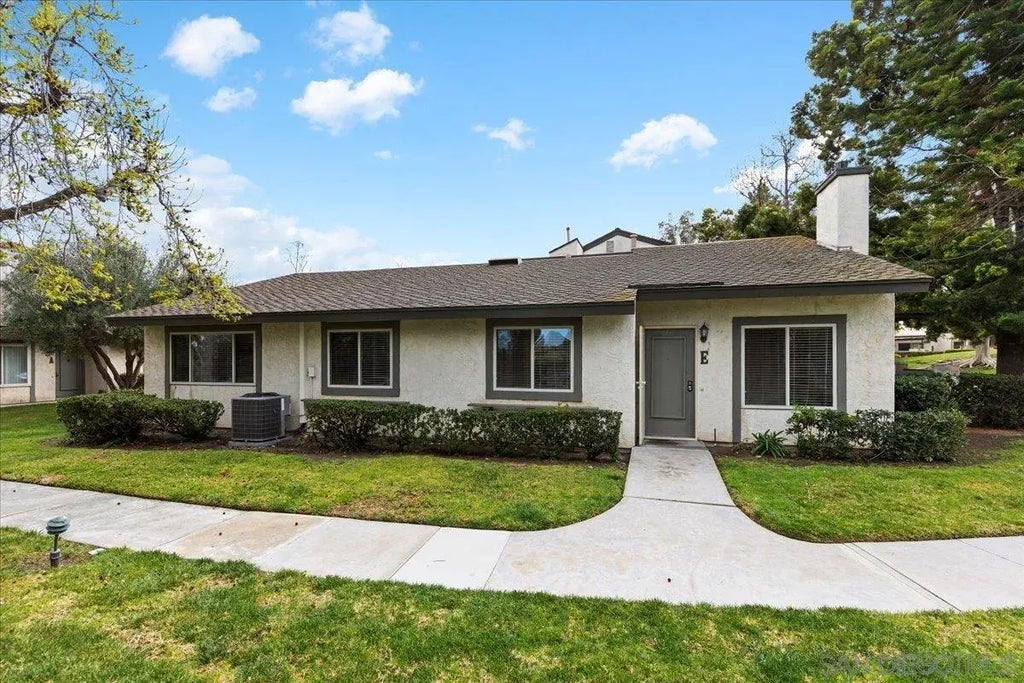 Perched at the edge of a picturesque canyon, this rare and radiant single-story retreat offers breathtaking sunset vistas and an exceptional sense of space and privacy. With only one shared wall, this three-bedroom, two-bathroom home features soaring 15-foot vaulted ceilings, clerestory windows, and a warm, inviting fireplace in the expansive southwest-facing living room. The seamless open-concept design flows effortlessly into the dining area and a generous, family-style kitchen with bar seating, abundant cabinetry, and ample counter space. The grand primary suite mirrors the living room’s lofty design, with its own vaulted ceilings, clerestory windows, and tranquil greenbelt views bathed in golden evening light. The third room offers versatility as a guest bedroom, private office, or serene yoga retreat. Additional highlights include an impressive storage room, direct access to the two-car garage, and modern conveniences such as A/C, dual-pane windows, a newer water heater, and in-unit washer/dryer.