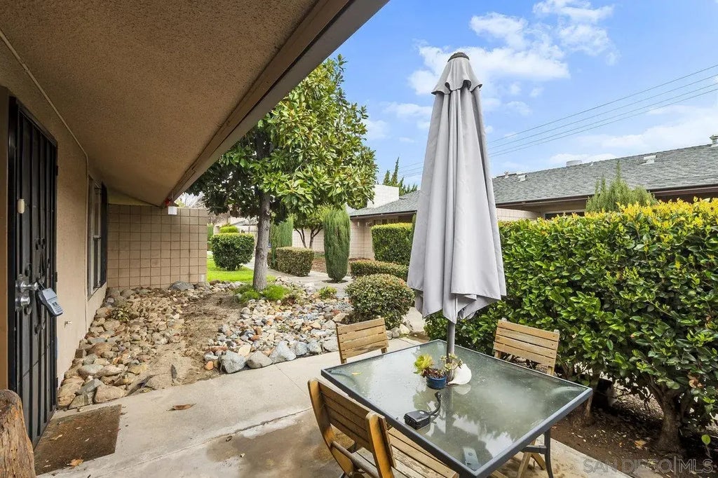 VA APPROVED COMPLEX. Single Story 2 Bedroom, 2 Full Bath End Unit with Central AC in a gated community. This Unit lives like a single-family home with only one shared wall & all living space on one floor. No one above or below! Open layout kitchen with eat in area + additional dining space. Spacious covered Patio with Washer & Dryer. Dual vanity sinks in both baths. Cozy fireplace. Includes an Assigned Carport with Storage closet. Complex features community Pool, clubhouse & basketball court. HOA Covers Water!