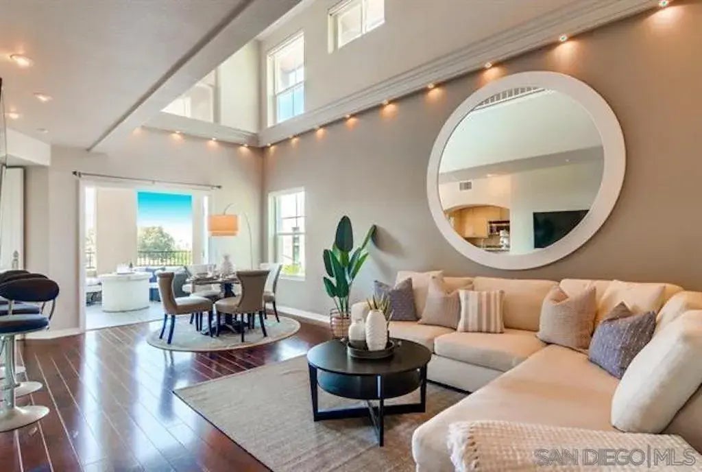 AVAILABLE MAY 1ST! Fully furnished designer top floor condo in downtown's most desirable area the Marina District! This home is GORGEOUS!! Features include soaring double height ceilings, updated kitchen & baths, large walk-in closet and rich laminate wood flooring. Located in City Walk, a secured condominium complex with gated entry, fitness center and BBQs. Inside laundry, automated remote controlled blackout blinds, an oversized covered patio with city views and underground secured parking complete this great place.