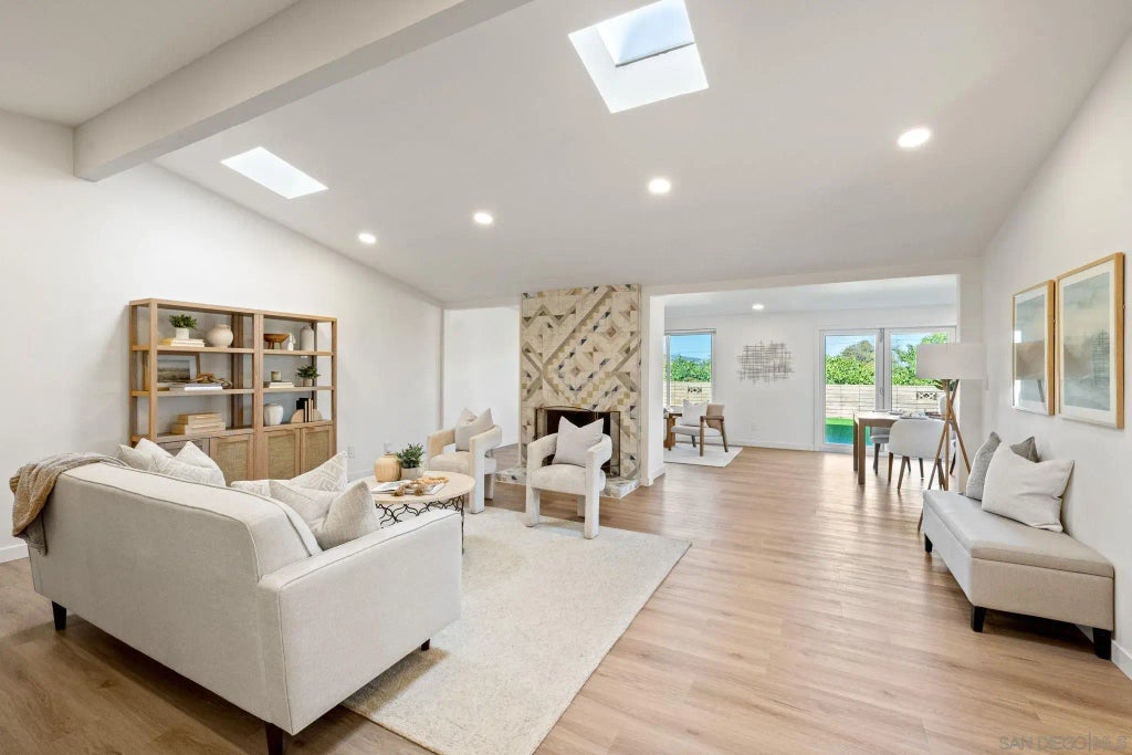 Nestled in the highly desirable neighborhood of Serra Mesa, this home is a true masterpiece offering timeless style and modern comfort. Step into this beautifully designed mid-century modern single-family home, featuring 4 bedrooms and 2 full bathrooms. Thoughtfully updated with high-end finishes and a versatile layout. The floor plan is seamlessly flowing with living, dining, and kitchen areas provide endless possibilities for customization. Abundance of natural light. The vaulted ceilings, expansive windows, high-end bi-folding patio sliding doors and an airy floor plan are ready to be curated to your liking. Fully equipped designer kitchen with custom cabinetry, quartz countertops, and high-end stainless steel appliances. The dual bi-folding sliding glass doors open to a private backyard oasis perfect for the San Diego indoor-outdoor lifestyle. Convenience meets practicality with a completely finished garage, updated electrical and recessed lighting that can be utilized in a multitude of ways to fit your lifestyle. Enjoy the best of San Diego living with this centrally located gem—offering both urban convenience and a peaceful retreat. Don’t miss out on this incredible opportunity!