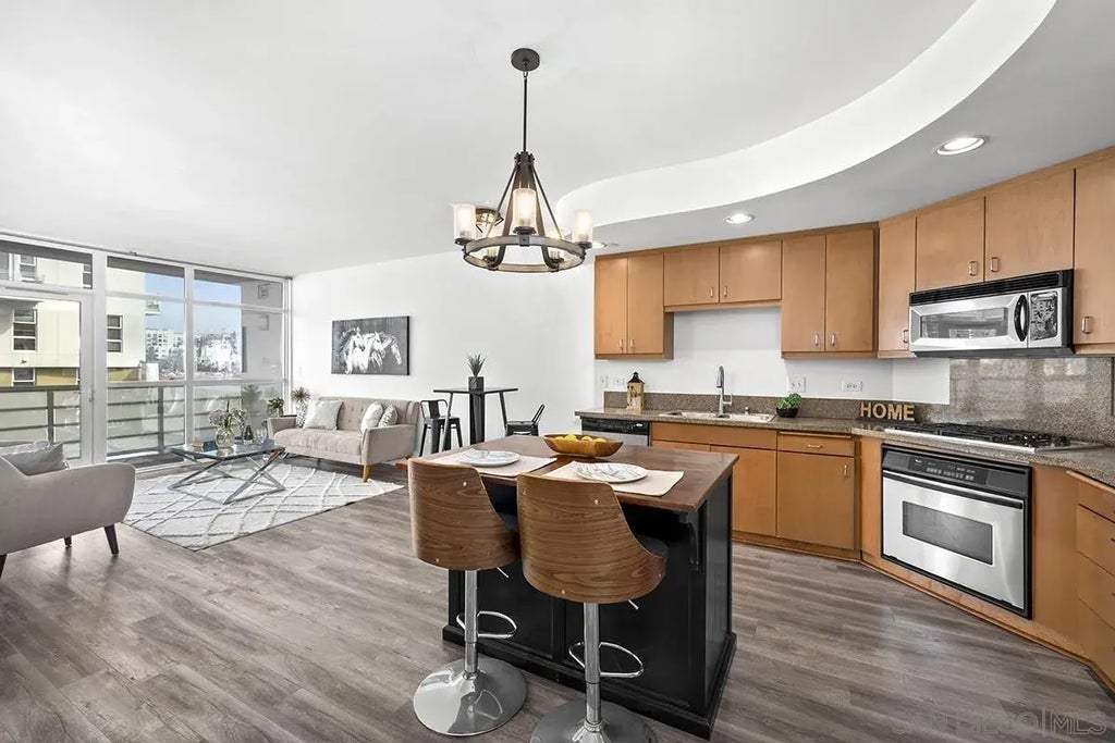 Discover the perfect blend of style, comfort, and convenience in this spacious 2-bedroom residence at Element. Located in the heart of East Village, this move-in-ready home offers city views from your private balcony, setting the scene for vibrant urban living. Step inside to floor-to-ceiling windows, Canyon Oak laminate wood flooring, and fresh paint, creating a bright and airy ambiance. The open kitchen is designed for both style and function, featuring stainless appliances, granite countertops, recessed lighting, ample cabinetry, and a center island with bar seating—perfect for entertaining. Enjoy the convenience of a secured parking space and a prime location just a few blocks from Petco Park, the Gaslamp Quarter, and San Diego’s top dining, shopping, and entertainment hotspots. This is affordable Downtown living at its best—so don’t miss out!