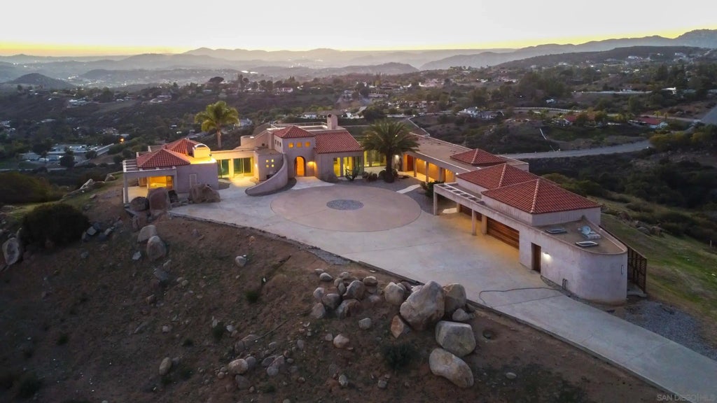 Rare 4,030 square foot Southwestern style home uniquely located on a Blossom Valley 20 plus acre mountain top with one of San Diego county's best 360 degree views! Views to the west include Downtown San Diego & the Ocean. Alpine to the East and surrounding Mountains - The Home includes 4 Bedrooms all with their private full bath, the primary Bedroom includes a separate Office / Library. Entry, Living, Dining and Kitchen area flow from and to the outside that are perfect for Entertaining! Once outside clime the stairs to an amazing view Deck that has the infrastructure for that perfect outdoor kitchen / Bar area. Come see for yourself the remarkable Home and imagine what your personal touches will create! Home has been "Virtually Staged"