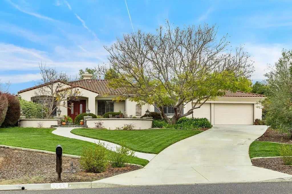 Welcome home to this stunning single-story in the highly sought-after Sycamore Ranch neighborhood, where breathtaking views of rolling hills and lush avocado groves surround the prestigious Golf Club of California. This beautifully remodeled home features an elegant kitchen with a spacious quartzite island, high-end Dacor range, sleek Zephyr overhead fan, and soft-close dark wood cabinetry complemented by a striking glass tile backsplash. A walk-in pantry and charming breakfast nook have been added for the kitchen’s functionality, seamlessly opening into a warm and inviting family room with a cozy rock-faced fireplace and mantle. The primary suite offers a private retreat w/custom built-ins and ensuite w/dual vanities, separate jetted tub/shower enclosure and walk-in closet w/built-ins. Throughout the home, you’ll find plantation shutters, crown molding, and a solar tube that enhances natural light. Owned 7.54 kW solar w/backup battery, newer roof, AC, newer water heater, central vac in main house ensures modern efficiency. The 3-stall attached garage offers storage cabinets and workbench for convenience. Outside, mature landscaping, with family orchard offering citrus and figs. Exterior lighting and a gas fireplace w/multiple seating areas provide spectacular views. Adding even more value, a detached 729 sf ADU offers a fully equipped 1 BR, 1 BA space ideal for guests or rental income. With no HOA and access to the preferred Bonsall School District, this exceptional home perfectly blends luxury, comfort, and resort-style living.