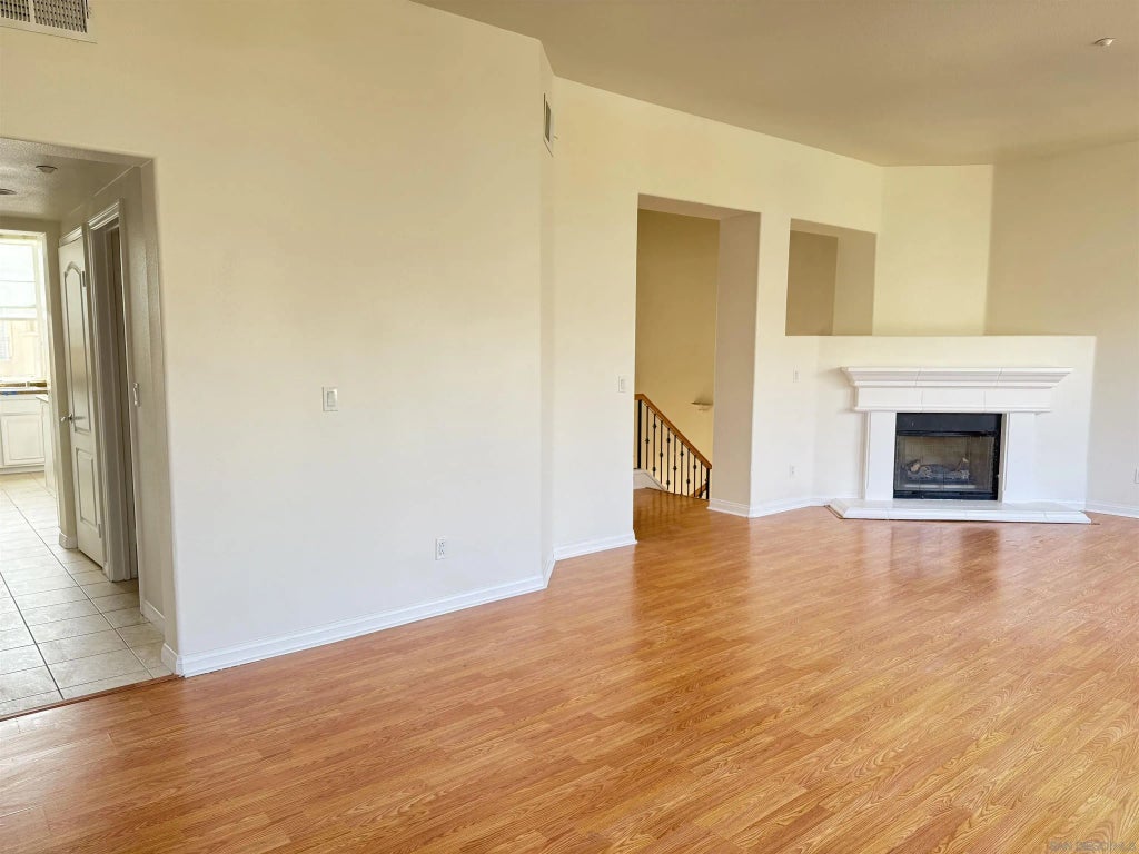 Spacious three-story townhome for rent. Newly painted with a fresh look, this townhome includes a two-car garage. On the first floor, you'll find two bedrooms and a Jack-and-Jill style bathroom, along with a private backyard—perfect for guests or in-laws. The second floor features an open kitchen, laundry room, and a large living area with a fireplace that opens onto a balcony, offering plenty of natural light. The third floor houses the master suite, featuring a high ceiling that enhances the bright, airy feel of the space.