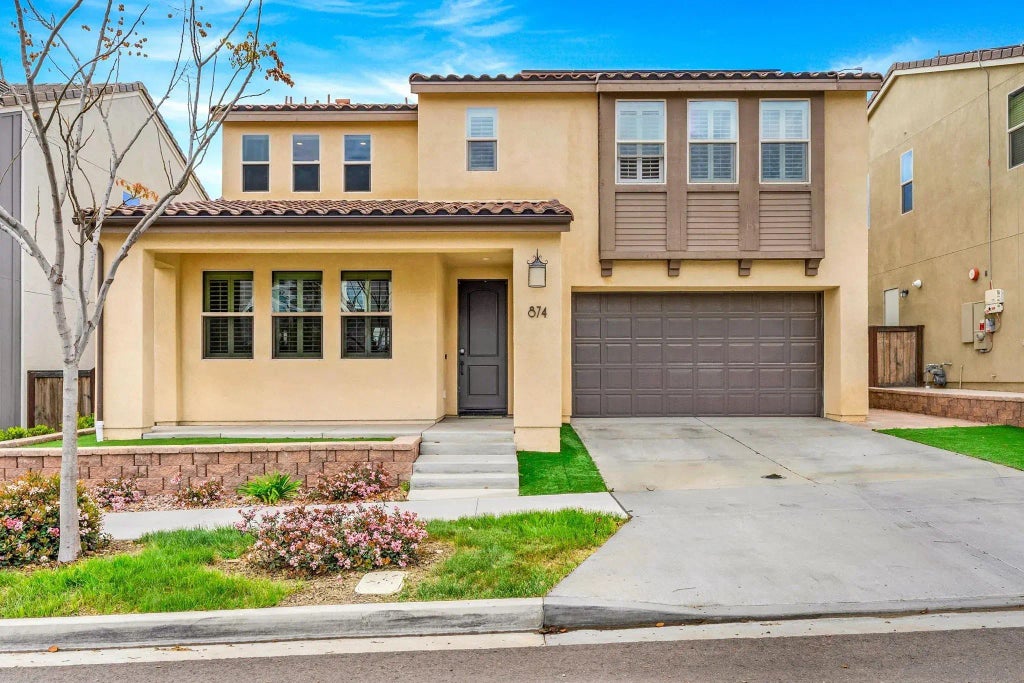 874 Camino Cantera is a stunning modern single-family home located in the sought-after community of Escaya. Built in 2020, this home boasts a spacious 2,289 square feet of living space on a well-sized 3,929-square-foot lot. With four bedrooms and three bathrooms, it offers a perfect blend of comfort and functionality for families or individuals looking for a contemporary living experience. Upon entering, you’ll be greeted by an open-concept floor plan featuring stylish finishes, high ceilings, and abundant natural light. The kitchen is a chef’s dream, complete with sleek quartz countertops, stainless steel appliances, ample cabinet space, and a large island ideal for entertaining. The living and dining areas flow seamlessly, creating a warm and inviting atmosphere. The primary suite is a true retreat, featuring a spacious bedroom, a luxurious en-suite bathroom with dual vanities, a soaking tub, a separate glass-enclosed shower, and a walk-in closet. The additional bedrooms are generously sized, perfect for family members, guests, or even a home office. The backyard provides a serene outdoor space, ideal for relaxation, BBQs, or gatherings with friends and family. The home also includes an attached two-car garage, central air conditioning, and energy-efficient features. As part of the vibrant Otay Ranch community, residents enjoy access to top-rated schools, parks, walking trails, shopping centers, and dining options. The home is conveniently located near major freeways, making commutes and weekend outings a breeze.
