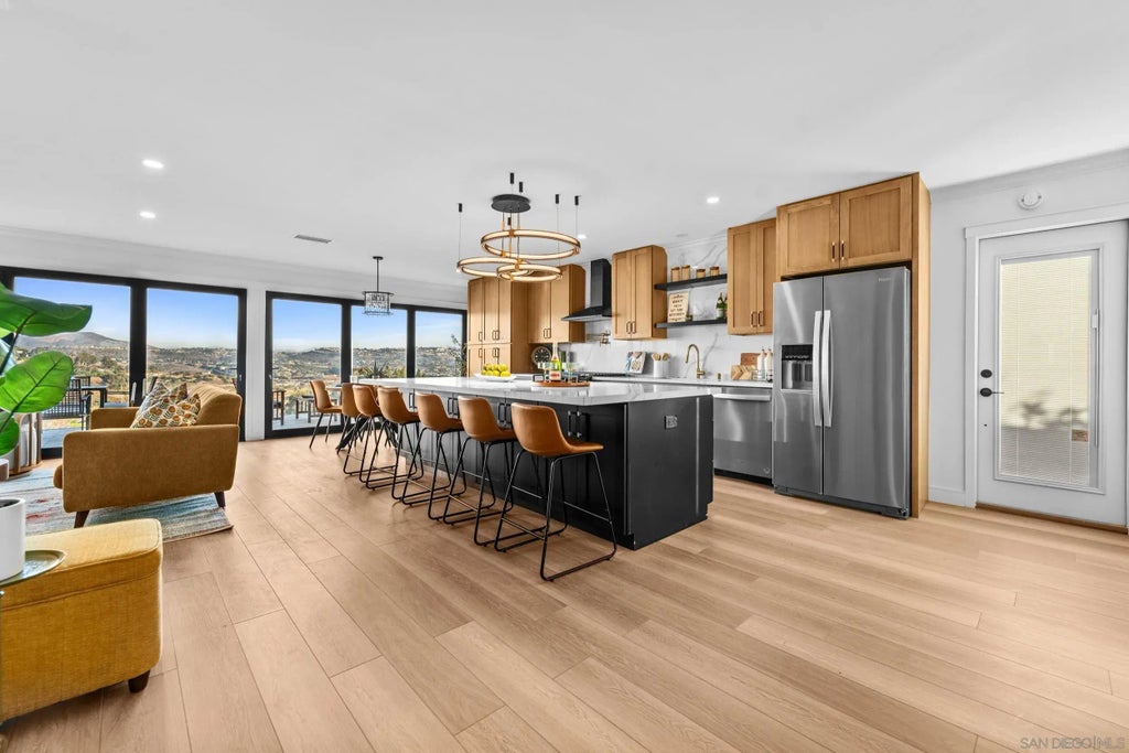 Located in the heart of desirable Tierrasanta, often referred to as the "Island in the Hills," this completely remodeled and upgraded to the maximum single-level residence offers breathtaking panoramic views of the canyon, golf course, and city skyline. The home has been thoughtfully designed with luxury in mind, featuring the finest designer finishes throughout. From the moment you step inside, you’ll be captivated by the open-concept layout, where stunning views are visible from almost every room.