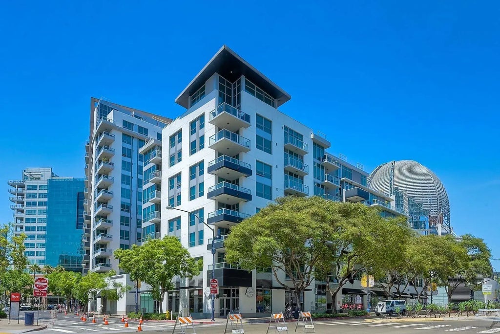 This stylish Penthouse level residence at Park Terrace exudes cool with its own private rooftop terrace that adds approx 600sf additional outdoor living space. Fantastic city skyline views and an incomparable downtown vibe await the new owners. Located across the street from Petco Park - if you open your windows , you'll hear the game day cheers! The owners completed stunning bath remodels 2 years ago , added new laundry - and have maintained original cherry wood floors throughout living areas. This exceptional unit was first sold to friends of the developers and features a large private storage room immediately adjacent to 2 prime side by side parking spaces on 1st parking level. Oversized master bedroom is large enough for king bed plus and office space or sitting area.