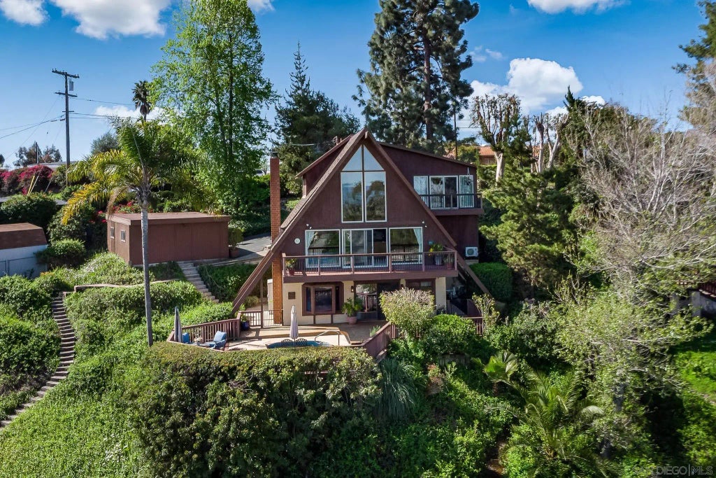 Welcome to this stunning 3-bedroom, 3-bath A-frame home, tucked away in the highly sought-after Fletcher Hills neighborhood of El Cajon. As you enter, you're immediately greeted by stunning glass windows offering 180-degree panoramic views of Santee, Lakeside and incredible mountains. This Big Bear-style home feels like a retreat, and every corner of the home invites you to unwind and soak in the natural beauty surrounding you. On the main floor, the open-concept kitchen flows into a cozy living and dining room, complete with a fireplace and access to a huge Trex deck. Imagine sipping your morning coffee while watching the sunrise or enjoying a quiet sunset, with hummingbirds fluttering nearby. This level also features a bedroom, bathroom, and a convenient laundry room. Upstairs, the primary bedroom is your personal sanctuary with even more breathtaking views, while a third bedroom with a loft offers a flexible space. Another bathroom completes the upstairs. Downstairs, a bonus room, third bathroom, and a second living room with a wood-burning fireplace await. The living room opens to a large patio and hot tub, where you can relax and take in the incredible scenery. On almost half an acre, extending from Katherine St to Seattle Dr, this home also offers a detached 2-car garage and updated features like a newer garage door motor and mini-split AC system. With a 60-year roof warranty still intact, this home is the perfect blend of comfort, charm, and breathtaking views!