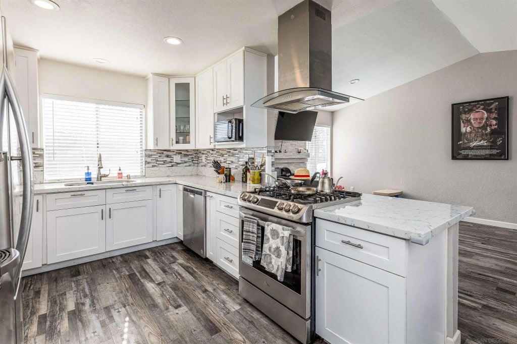 Upgraded 3 bedroom, 2 bathroom single story home has been enhanced with today’s sought-after finishes and appeal. Conveniently located close to I-5, less than 15 minutes to Imperial Beach, the border and less than 20 minutes to Downtown for easy commuting. Featuring updated finishes and modern appealEnter to gaze upon a light and bright open floor plan allowing the living, dining and kitchen to flow seamlessly together. Large windows flood the interior in natural light. The upgraded kitchen features crisp, white Shaker cabinetry, quartz countertops accented by a mosaic tile backsplash and stainless steel appliances. Both bathrooms have been upgraded with modern flair. Front and back yards provide plenty of outdoor enjoyment, while the attached 2 car garage provides extra storage space.