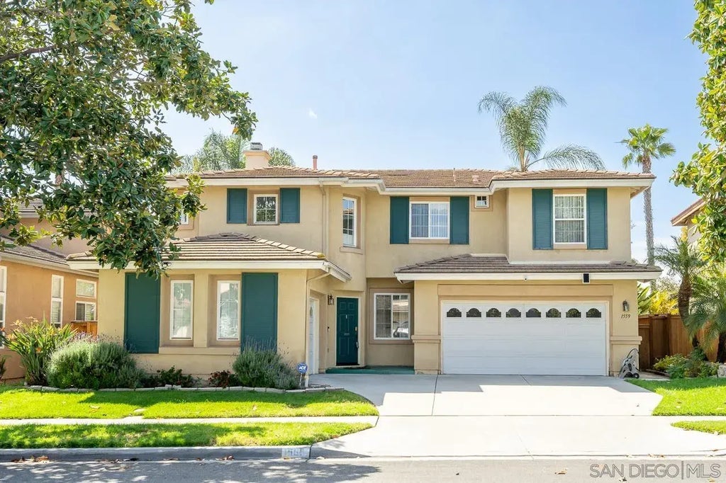 Welcome to 1559 Pleasanton Rd, a spacious and beautifully updated home nestled in a tranquil, storybook-like neighborhood of Chula Vista. With 5 bedrooms and 3 full baths, including a convenient downstairs bedroom and full bath, this home offers flexibility and comfort for a variety of living situations. Inside, you'll be greeted by vaulted ceilings and an abundance of natural light that fills the home. The thoughtful layout includes a front family room, a formal dining area, and a separate living room with a cozy fireplace, perfect for both everyday living and entertaining guests. The open kitchen has been updated with a newer fridge, cabinets & granite countertops, complemented by beautiful upgraded flooring on the main level. A freshly remodeled downstairs bathroom adds a modern touch. Upstairs, the primary suite offers a luxurious retreat with two walk-in closets, a spa-inspired bathroom, and a private balcony overlooking the serene backyard. A dedicated laundry room adds everyday convenience, with a newer washer & dryer. Step outside to your own private backyard oasis, featuring lush landscaping, mature lemon trees, and no neighbors behind! It's the perfect space to relax, garden, or entertain in peace. The home also includes solar and a 2-car garage plus an attached 1-car garage, providing plenty of space for parking, storage, or hobbies. This home is ideally located close to parks, shops, restaurants, and outdoor recreation, with easy access to the 125 freeway. It’s the perfect blend of peaceful living and modern convenience. This is a must see!