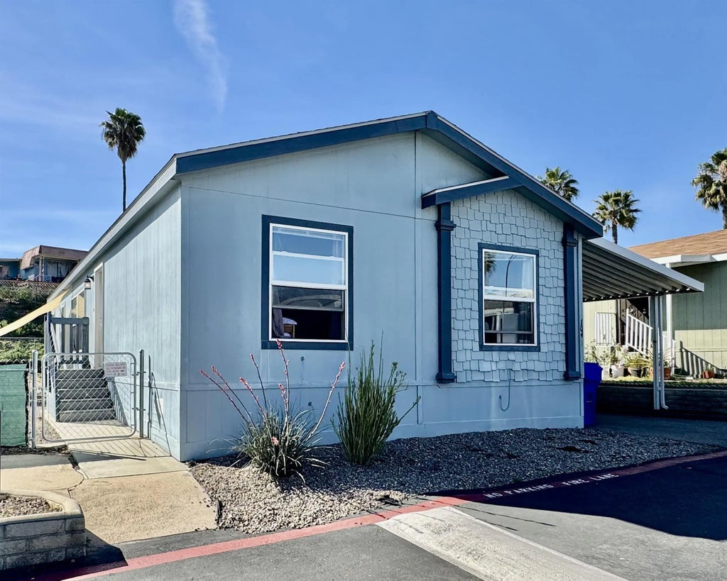 Spacious 3BR/2BA manufactured home in Rancho Valley Mobile Home Park—an ALL AGES community in the Bostonia neighborhood of El Cajon! Built in 2016, this 1,190 sq ft home features an open living room, dining area, and a cook’s kitchen perfect for entertaining. Primary suite includes ensuite bath, plus a second full bath off hallway with laundry area (side-by-side W/D). Central A/C & heat. Long driveway fits 2–4 cars depending on size. Large fenced backyard with side gate—great for pets (park allows pets w/ restrictions). Community clubhouse offers pool, spa, sauna, billiards, library & rec room available to reserve for parties, plus BBQs & outdoor seating. Monthly space rent: $1,780. Trash: $47.40. Sewer: $31.32. Gas, electric & water sub-metered & billed monthly by park mgmt. Great value and priced to sell—don’t miss it!