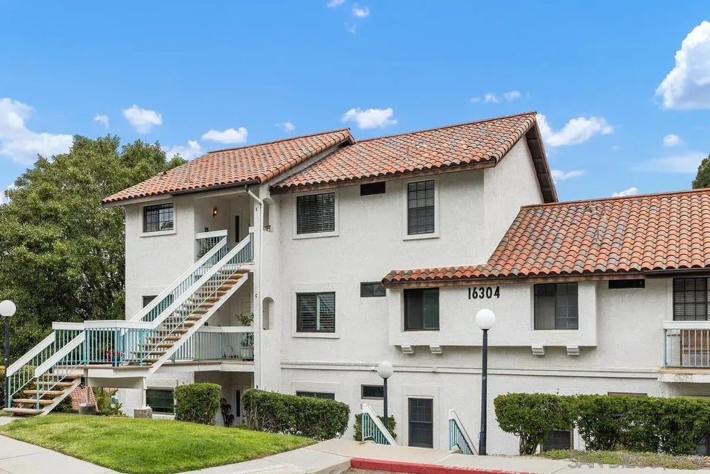 Penthouse living in Mir La Paz! Desirable top floor 3-bedroom residence in the Bernardo Heights community. Bright with an open floor plan, this home includes vaulted ceilings, a gourmet kitchen and a spacious living room with fireplace leading out to a large balcony with amazing views to the north. Updates include new flooring, new kitchen appliances, a new HVAC system and a beautifully remodeled bathroom with exotic stone. A full-size washer/dryer, 2 car garage and an HOA that includes a heated pool, tennis courts and rec room with membership to the Bernardo Heights Community Association are also included! Located in the Poway School District.
