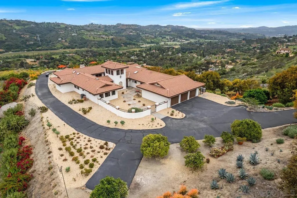 Perched high on a scenic hilltop, this exceptional residence commands breathtaking panoramic views of rolling hills and lush landscapes. Nestled within the exclusive, gated community of Saratoga Estates, the home offers a charming blend of luxury, privacy, and tranquility. Upon entering you'll experience a spacious open-air courtyard featuring a fountain w/rustic Spanish tiles, where French doors encircle the entry and Great Room, creating a seamless flow between indoor and outdoor living. Vaulted ceilings with rich wood finishes and a cozy fireplace enhance the Great Room’s serene ambiance. Expansive windows flood the space with natural light and showcase endless, uninterrupted vistas. Whether savoring a quiet morning on the terrace in the Solar heated, saltwater pool and spa or hosting lively gatherings, this stunning home provides an idyllic, picturesque setting for every moment.