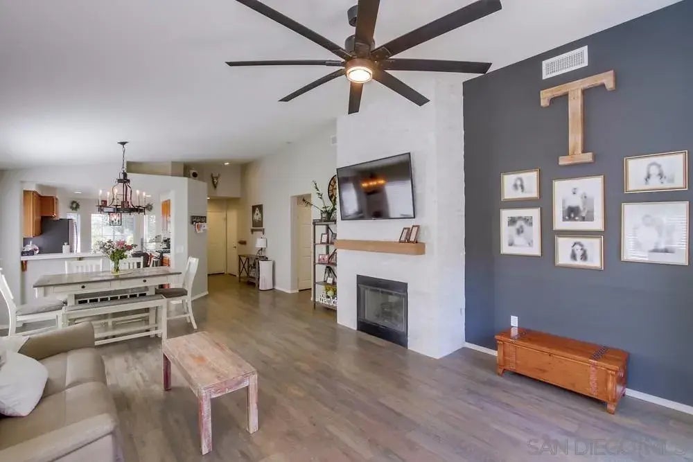 Welcome to 1966 Verbena Terrace, nestled in Alpine's highly sought-after Crown Hills community! This beautifully updated 3 bed, 2 bath home offers just under 1,500 sq ft of comfortable living space with modern touches throughout. Enjoy stylish updated flooring, a new sliding door in the guest room, low-maintenance turf landscaping, and a stunning new stone fireplace. Additional upgrades include a new HVAC system, whole-house water filtration, and elegant plantation shutters. Residents of Crown Hills also enjoy fantastic amenities including a pool, gym, and clubhouse—making this the perfect place to call home!