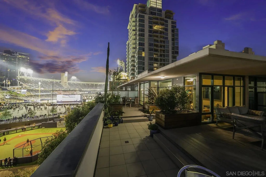 Featured in WSJ article, this stunning corner townhome boasts SIX private outdoor spaces, including a spectacular 700 sq ft corner rooftop deck with views into Petco Park, a rooftop garden with high-end Red Mangaris hardwood planters, Timber Tech Advanced PVC flooring by AZEK, and a stand-alone flagpole. The home exudes opulence, with top-of-the-line finishes, complemented by European white oak engineered wood floors. The front courtyard opens up to the pool deck with lounging areas, BBQ's, fitness center, steam room, and sauna. Secure side-by-side parking for two vehicles, plus additional storage, is included. The Legend offers a unique blend of privacy, luxury, convenience and security with a 24-hour attendant and concierge services. The townhome is situated on the second floor, offering enhanced security with no direct street-level access. A baseball fan’s dream location, in the heart of the enchanting Padres Ballpark. This location is unmatched, adjacent to one of the few lush parks in the area at Gallagher Square featuring world class concerts, pickleball, children's park, gated dog park and so much more!