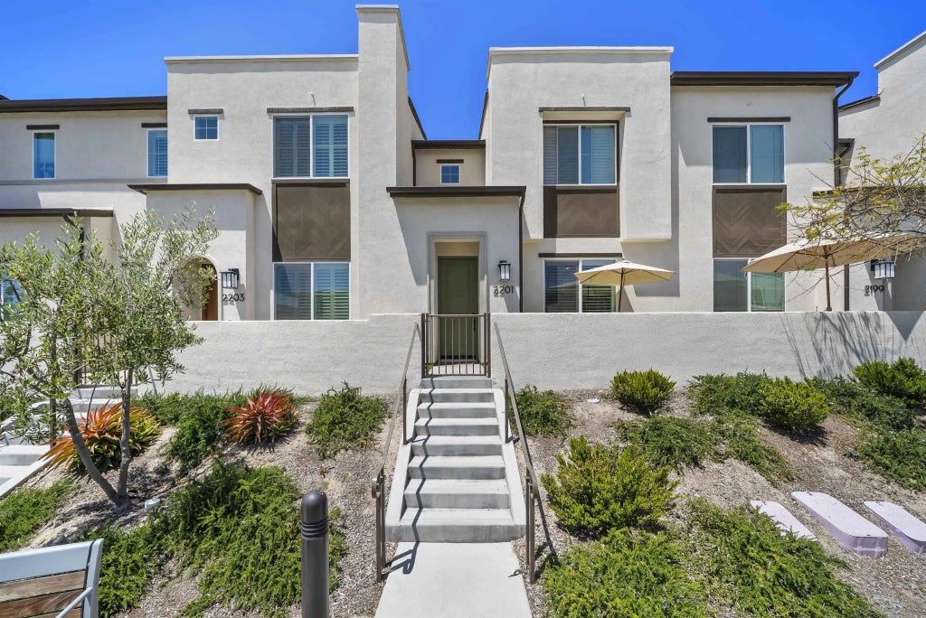 Discover this stylish and well-appointed 3-bed, 2.5-bath home in Côta Vera, one of San Diego’s fastest-growing and thoughtfully planned communities. Located in a quiet, family-friendly neighborhood, this home blends modern design with everyday comfort. Enjoy a bright open-concept layout with luxury vinyl flooring, custom shutters, and a seamless flow between the living, dining, and kitchen areas—perfect for entertaining. The kitchen features quartz countertops, gold hardware, a 5-burner stove, and ample storage. Upstairs you'll find all bedrooms, including a spacious primary suite with dual vanities, a walk-in closet, and a private ensuite bath. Secondary bedrooms are generous in size and filled with natural light. Smart home tech includes a Neo system, Ring doorbell, and a tankless water heater. SOLAR PAID OFF. The 2-car garage offers epoxy floors and built-in racks for storage. Relax on your front patio across from the kids’ park, with a dog park just around the corner—perfect for pets and play. Côta Vera offers landscaped parks, walking trails, splash pads, and a vibrant Town Square with shops, dining, and community events. Enjoy weekend farmers markets, local pop-ups, and festive gatherings right outside your door. With top-rated schools and freeway access nearby, this is suburban living reimagined.