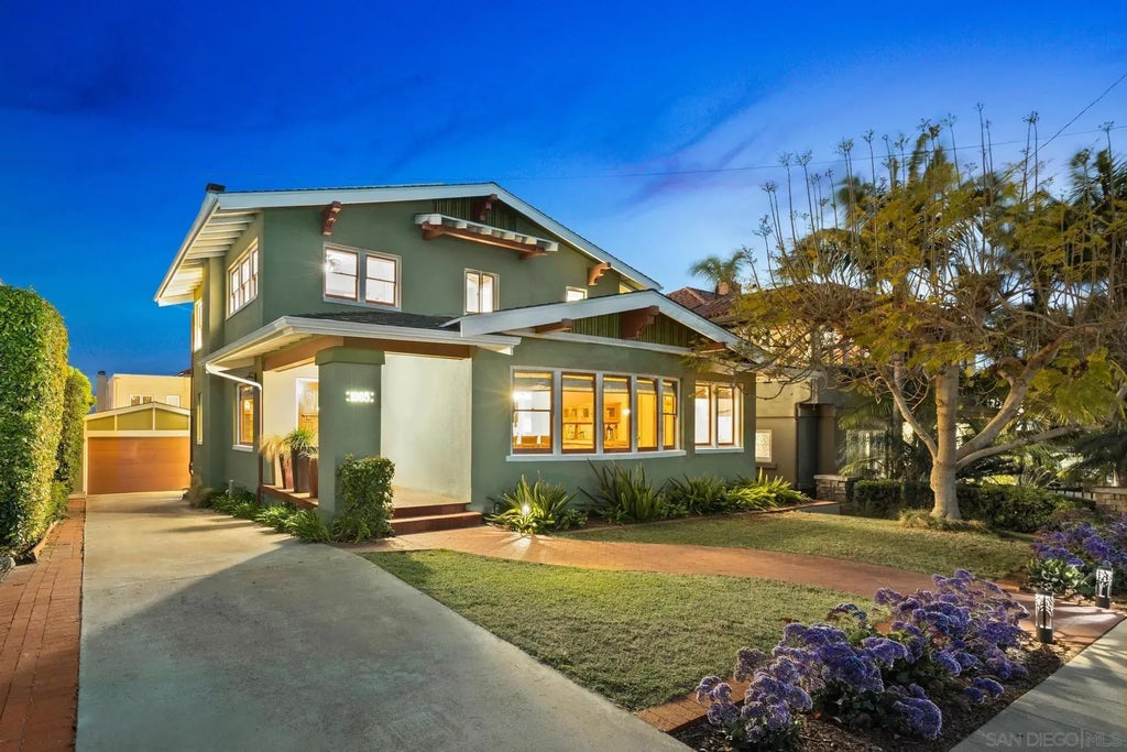 Perched in a peaceful setting with views of Downtown San Diego, this classic Craftsman home blends timeless architecture with thoughtful modern upgrades. Rich in original character, it features exquisite gumwood trim, vintage paneling, & period moldings. Step inside to discover elegant living spaces adorned with hardwood floors, French-paned doors, a wood-burning fireplace, and a formal gumwood-paneled dining room with bow front windows and a custom-built credenza. Just off the living room, you'll find an office with original cabinetry and a half bath.The chef’s kitchen, remodeled in 2011, exudes Craftsman elegance with top-tier appliances, including a Wolf, Thermador, & Bosch. The space is complete with a subway tile backsplash, Caesarstone countertops, & a built-in pantry. Adjacent is the breakfast room, which previously served as the butler's room. A sky-lit staircase, lined with built-in bookcases & gallery-style display walls, leads to the bedrooms, all offering spectacular views of the city, the bay, & Point Loma. The bathrooms, remodeled in 2012, feature high-end tile finishes, Caesarstone counters, & a luxurious jetted tub. Thoughtfully built-in and dual-paned windows, solar system provide charm & energy efficiency throughout the home. The basement includes a large laundry room, abundant storage, & direct garden access. Outdoor living is just as inviting, with a spacious deck ideal for morning coffee or sunset views. The professionally landscaped offer lush privacy, mature plantings, and tranquil retreat spaces. Other highlights includes newer roof, detached garage.