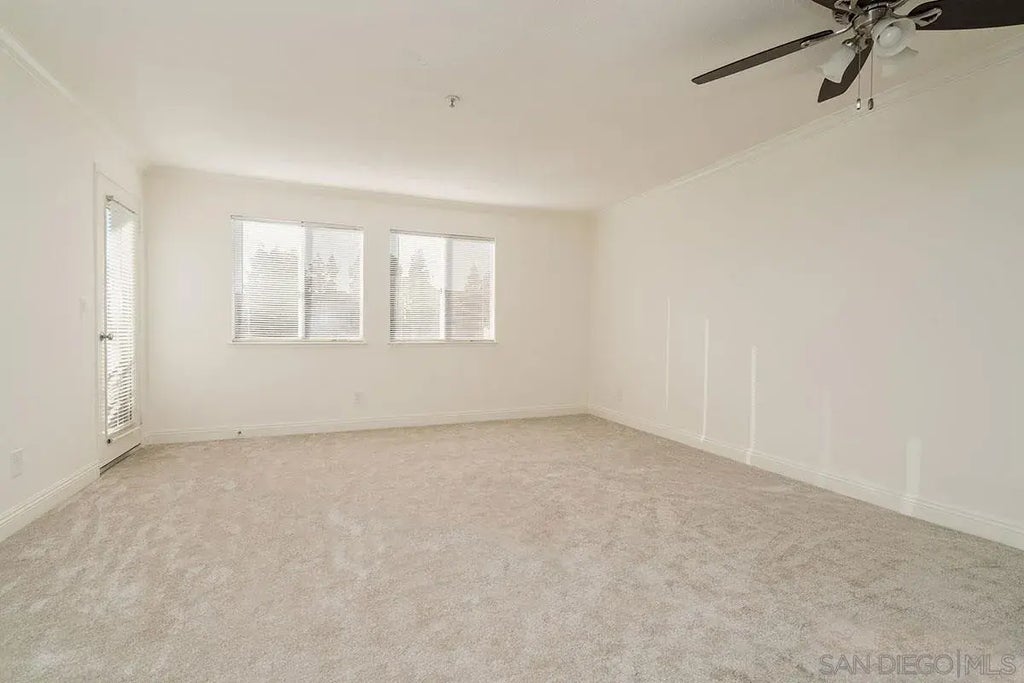 Updated top floor end unit in the coveted Villa Vicenza at University City. This 1 full bedroom and 1 full bathroom unit features newer stainless steel appliances. Black quartz countertops in kitchen and bathroom. Newer tile and newer carpet in living room with direct access to outdoor balcony. Storage room in balcony. Light, bright, and airy with open views to enjoy. Unit includes stacked washer and dryer in-unit. Storage closet in hallway. Ceiling fans in living room and bedroom. Rent includes water, sewer, and trash. Don't miss out on this beautiful unit available now! Close access to highways and shopping (UTC Westfield Mall, I-5, I-805, I-52, I-56, Whole Foods, Vons, Trader Joe's, Nordstrom Rack, banking, restaurants, etc.). Nearby Hyatt, UCSD, Trolley, MTS public transportation, and much more!