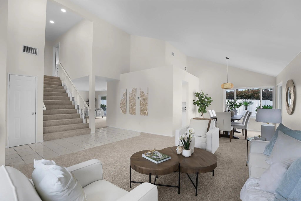 Welcome to your Rancho San Diego dream home with scenic views and a private pool! This stunning 3-bedroom, 2.5-bath residence is ideally located on a quiet cul-de-sac, just steps away from Woodhaven Park. Step inside the front door to soaring vaulted ceilings and abundant natural light. The kitchen features quartz countertops, modern lighting, and flows into an expansive living space with a gas fireplace. The large dining and living areas open to a fully fenced backyard with a sparkling pool and colored concrete patio perfect for entertaining year-round. Upstairs, the luxurious primary suite offers a spa-like bath with a custom-tiled walk-in shower, dual vanity, and a spacious walk-in closet. You can enjoy views of the park and San Miguel Mountain from the private balcony. All bedrooms are upstairs, along with a full bath and extra hallway storage. Downstairs includes a convenient half bath, full laundry room and direct access to the attached 3 car garage which provides ample space for vehicles or extra storage. This home has central heating and air conditioning, dual pane vinal windows and doors, quartz counters in the kitchen, brand new carpet, new interior paint and new light fixtures throughout. With easy access to freeways, shopping, dining, schools, the beach, and the airport, this move-in ready home has it all.