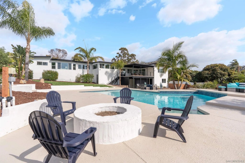 Welcome to this exquisite and one-of-a-kind property in the heart of El Cajon that is situated on over an acre! This spacious home includes 5 bedrooms and 4 bathrooms, each offering a unique and private retreat for every member of the household or guests. Expansive living areas that flow effortlessly from one room to the next. A stunning gourmet kitchen, featuring modern finishes, and overlooks a dramatic drop-down living room, complete with a cozy fireplace and large windows that offer breathtaking views of the lush backyard. The expansive backyard features a sparkling below-ground pool located just outside the ADU. This additional unit is a bonus that offers a kitchenette, a full bedroom, and a private bathroom—perfect for guests, multi-generational living, or rental income. The outdoor space doesn’t stop there: enjoy cozy evenings around the fire pit, cultivate your favorite plants in the thoughtfully designed planter boxes, or create your own small farm with room for chickens and more. Owned solar! This unique home combines the seclusion and serenity of rural living with the convenience of being just moments away from all the amenities El Cajon has to offer.