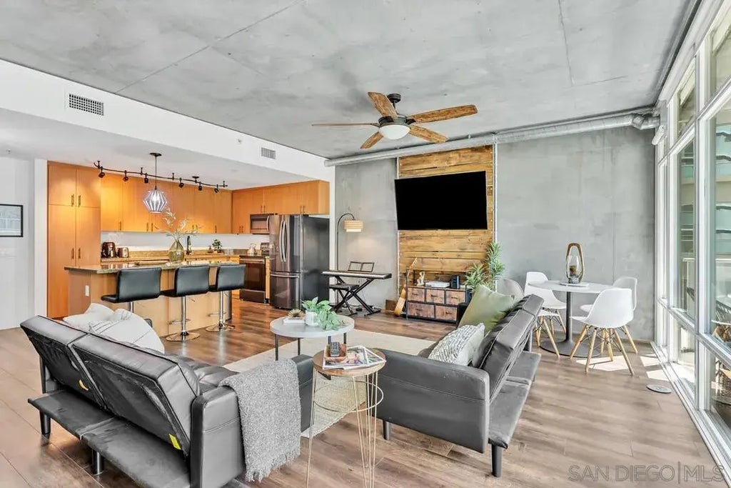 Stunning Downtown San Diego Condo – Move-In Ready! Step into luxury with this oversized, open-floorplan 1-bedroom condo in the heart of downtown San Diego! This 4th-floor gem is fully upgraded and flooded with natural light, thanks to floor-to-ceiling windows. Enjoy premium flooring, a sleek entertainer’s kitchen with a large island and reverse osmosis water system, plus a beautifully renovated bathroom. A custom wood wall divider adds warmth and style to the space. The spacious bedroom features custom closet built-ins, offering ample storage and organization. This home also includes in-unit full-size washer and dryer, one designated parking spot and a large separate storage locker. The building offers top-tier amenities, including 24/7 security, a 2nd-floor gym, and an unbeatable rooftop retreat with a spa, BBQs, and breathtaking downtown views. VA approved!