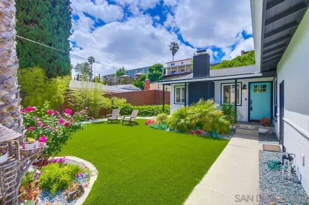 Welcome to this beautifully updated and move-in ready 3-bedroom, 2-bath home nestled in one of La Mesa’s most convenient neighborhoods. From the moment you arrive, you’ll appreciate the meticulously maintained landscaping and low-maintenance artificial turf that offer year-round curb appeal with minimal upkeep. Step inside to discover a bright and welcoming interior featuring a spacious family room complete with a cozy fireplace—perfect for relaxing evenings. The home boasts modern finishes, central air conditioning, and thoughtful updates throughout. The oversized primary suite is a true retreat, featuring a separate exterior entrance that opens up a world of possibilities— such as a guest suite, rental opportunity, or private home office. Enjoy the convenience of a 2-car garage and an unbeatable location close to shopping, dining, and easy highway access, making your daily routine a breeze. Don’t miss your chance to own this beautiful turnkey home in La Mesa!