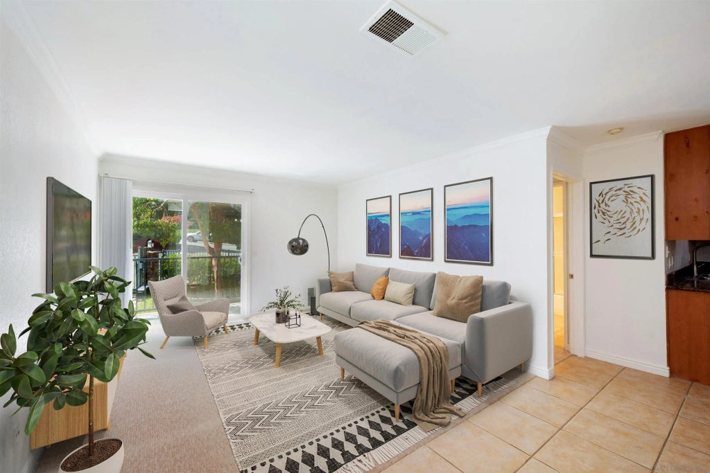 Seller may consider a 2/1 int. rate buy down. Stylish top-floor, corner-unit 2-bed, 2-bath in Latitude community w/ no one above. Natural light pours through dual-pane windows & freshly painted interior. Kitchen w/ granite countertops & stainless appliances. In-unit full-size stackable washer & dryer in closet. Carpeted BRs & living room. Access to 15 & 94 freeways, & Downtown San Diego. Well-maintained landscaping, pool, spa, BBQ area & 2 assigned spaces (1 carport covered space) Pet-friendly. Photo gallery includes virtually staged photos.
