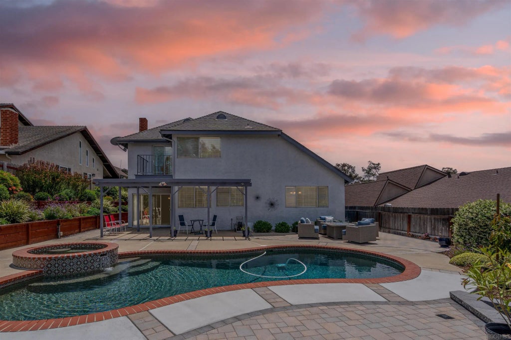 Welcome to 12824 Via Caballo Rojo—a stunning 4-bedroom, 2.5-bath home located in a peaceful cul-de-sac within the highly sought-after Poway Unified School District. Ideal location with quick 3-5 minute access to I-15 and CA-56. This home features vaulted ceilings, a cozy gas fireplace, a 2.5-car garage, and recently updated bathrooms. Step outside to take in breathtaking views, a huge paver patio, and a private pool/spa, perfect for entertaining. With front and back patios, low-maintenance landscaping, and solar power, this home is both beautiful and efficient. Don’t miss this rare opportunity to live in comfort, style, and convenience!