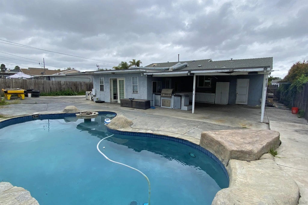 Cash only. Fixer, Huge lot 8900sf Large pool with Slide and Spa. Close to Hilltop High School. Possibilities are many. RV parking 2 large storage sheds Covered patio area with Island