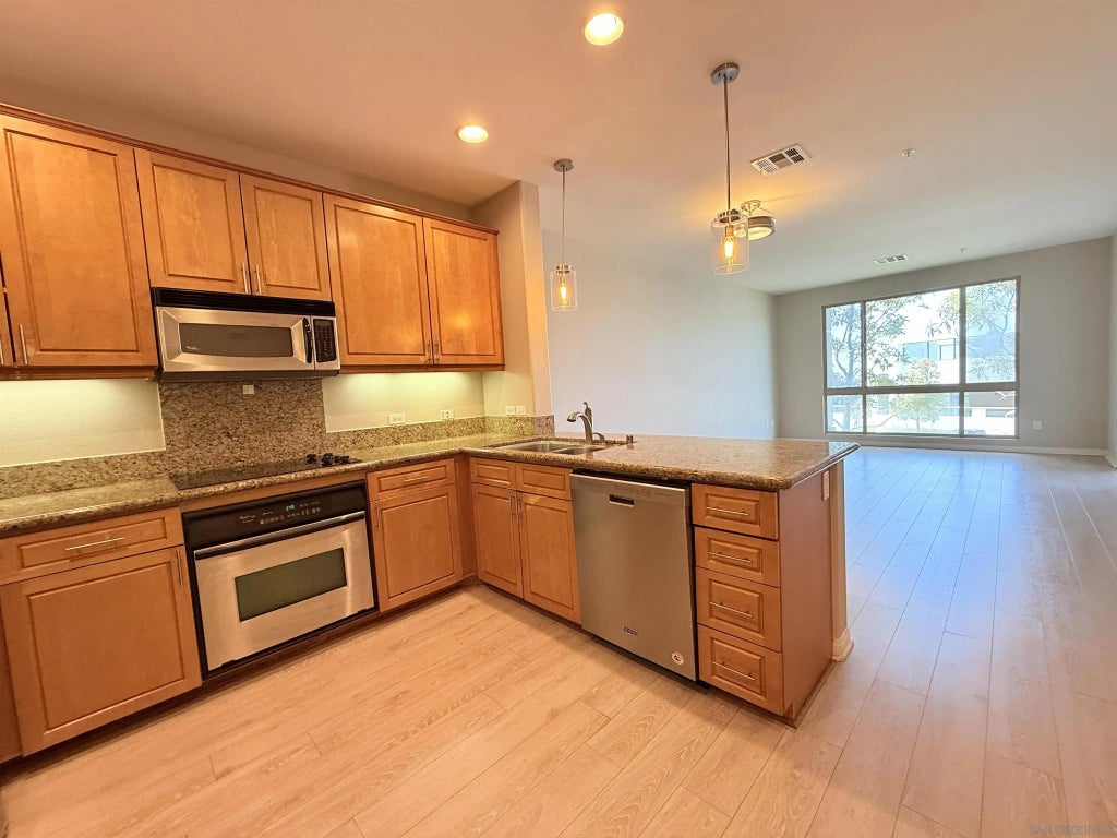 HUGE PRICE DROP BY MOTIVATED SELLER. BEST PRICED CONDO ON THE MARKET. PRICED BELOW RECENT SALES. First-floor convenience in Pell Place, where your home can match your lifestyle. Located in the heart of Carmel Valley, walk across the street to Del Mar Highlands & One Paseo for boutique shopping, fitness studios, city library, parks, cozy coffee shops, and a dynamic mix of restaurants. Experience comfort & convenience in one of Carmel Valley's most central communities. This 1st floor unit has an open floor pan with a U-shaped kitchen with tons of counter & cabinet space. Open to the large living room with floor to ceiling windows. The spacious balcony is extra private because it faces outward for city views and is at a 2nd story level from the ground. The comfortable bedroom has a nice walk-in closet. The sizable bathroom has even more cabinets for storage, and features a full size washer and dryer. Pell Place is a fully gated & secured community with modern access systems for your guests and deliveries. Experience the exciting amenities including state of the art fitness center, dog run, BBQ area, plentiful EV car charging, putting green, and an active social community with an on-site HOA office. There is 1 assigned gated garage parking spot. Make this unique condo your home and start enjoying the vibrant & active community!