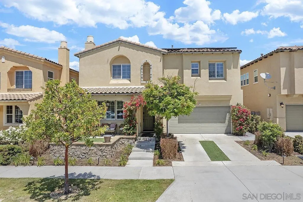 A truly exceptional 5-bedroom, 3-bathroom home in Chula Vista, California, offering 2,615sq. ft. of meticulously upgraded living space. This property boasts a prime location facing a serene park, ensuring no direct front neighbors.The exterior features a welcoming front porch with artificial turf and a sturdy retaining wall that separates a spacious front driveway for ample parking. Step inside to discover an open floor plan, where every detail has been thoughtfully enhanced: new flooring throughout the entire home, a gourmet kitchen with a cooktop, double oven, microwave, refrigerator, and a large kitchen island; elegant crown molding, stylish shutters throughout and the convenience of a downstairs bedroom and full bathroom. A large sliding door overlooking the backyard floods the space with natural light. The upper level offers a blend of comfort and functionality, with a built-in cabinet office space that includes the convenience of a wine fridge and microwave. The master bedroom is a luxurious sanctuary, with a large ceiling fan, expansive space, and a dedicated walk-in closet for her and a large closet for him, and an en-suite bathroom boasting a dual sink vanity for two, a large central tub for ultimate relaxation, and a private toilet room. Equipped with cutting-edge upgrades that enhance efficiency and convenience, include paid-off solar (Sempre Solaris system). A dedicated car charger and battery, and an efficient tankless water heater. This stunning residence is meticulously upgraded from top to bottom and offers an unparalleled living experience.