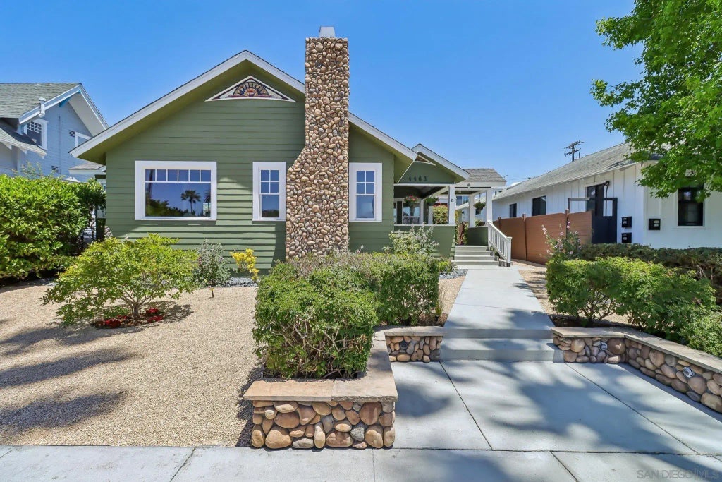 Welcome to the heart of University Heights. This unique Craftsman home with large open living spaces and modern upgrades is located on one of San Diego’s most beautiful palm-lined streets. With 2,315 square feet of indoor living space, plus an additional covered patio (~345 SF) on an oversized 7,008 SF lot, this thoughtfully updated 4-bedroom, 3-bathroom Craftsman home seamlessly combines classic charm with contemporary comfort. The sun drenched living room features soaring barrel style ceilings, with large south and west facing windows, and a chef’s kitchen with stainless steel appliances, oversized island, and gas range—perfect for entertaining or relaxing at home. Unique to this home are two primary suites with en suite double-vanity bathrooms and a third downstairs bedroom with a bonus room that can be used as an office or playroom. There is also a full hallway bathroom, an additional versatile bonus room with laundry closet, ideal for a home gym, and a large, bright upstairs loft bedroom with wood beam pitched ceilings…all creating a home that offers exceptional beauty and flexibility. Enjoy indoor-outdoor living with a renovated designer backyard, raised garden beds, lemon tree, Chinese evergreen elm shade tree, and a lighted covered patio with retractable shade. The backyard is perfect for entertaining, movie nights (custom electrical outlets on the outdoor shade structure make it perfect for watching projected movies), and play—and room to expand with one or more ADUs while still leaving plenty of outdoor space.