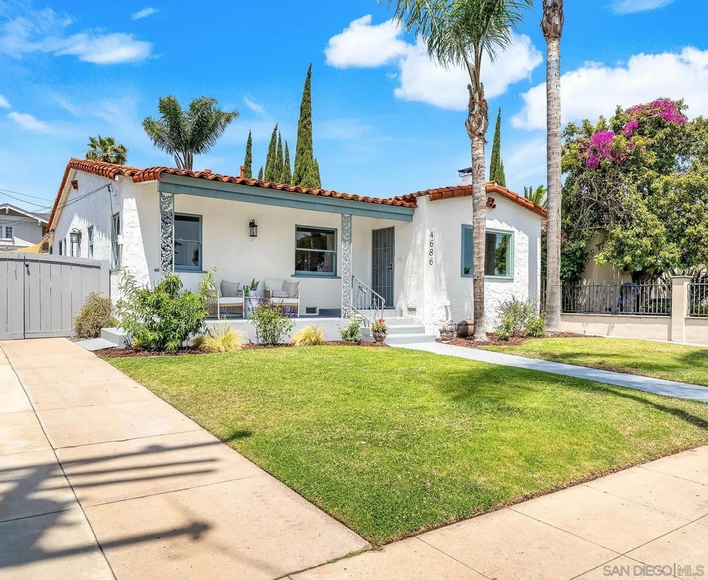 Situated in one of the most desirable locations in historic Kensington, 4686 Van Dyke is just steps from it all. Boasting unparalleled charm, Kensington remains one of San Diego's premier neighborhoods just steps from Dining, shopping, coffee shops and community park. This Spanish home offers old world charm, large outdoor yard and a mix of modern features. With it's open concept living, you'll be invited into a large living room, spacious dining and modern kitchen. Three oversized bedrooms with two full modern updated bathrooms make for turn key living. Rarely found for the area you'll be rewarded with an abundance of storage with full laundry area, hall closet and two closets in the primary alone. Step outside and enjoy your own private oasis with complimented with mature landscaping, sitting area, dining and lawn. Additional features included detached garage, abundance of parking, and multiple upgrades throughout. This home is not to be missed!