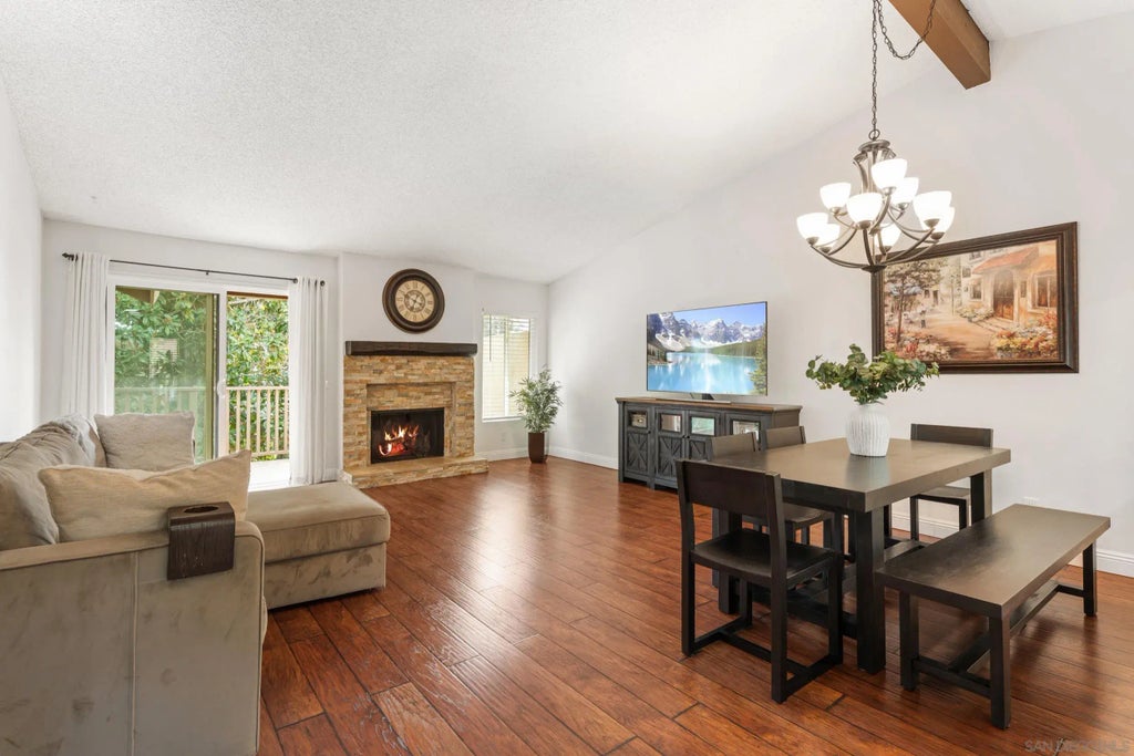Completely remodeled in 2019. 2BD/2BA (ensuite),1308 sq ft condo, MOVE-IN READY! Features include a sleek new sparkling clean kitchen w/white quartz countertops, soft-close cabinets, new appliances, & wine fridge. New flooring throughout, stacked stone fireplace w/custom mantel, vaulted ceilings & updated baths. New HVAC, furnace, H2O heater, windows, & balcony. Bordering Pala Mesa Resort offering golf, driving range, a beautiful restaurant, hotel, tennis & more. Perfect for out of town guests.