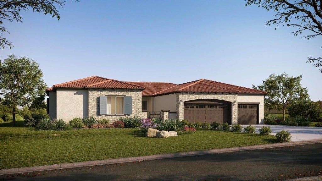 Now releasing phase 2, Set amidst the picturesque foothills of Valley Center, New Pointe Communities proudly introduces an exclusive collection of 9 private, single-level estate homes. These exceptional residences are thoughtfully designed and situated on expansive 2-acre-plus elevated lots, offering breathtaking views and unparalleled tranquility. Welcome to the Plan 2 featured floor plan spans 3,610 sq. ft with 5 bedrooms and 4.5 baths, designed with an open layout that includes a spacious great room, high ceilings, a cozy fireplace, and integrated LED lighting. The gourmet kitchen is a chef’s dream, featuring white shaker cabinets, elegant quartz countertops, a large center prep island, a walk-in pantry, and an upgraded stainless steel appliance package, including a propane gas range and a built-in 48-inch GE Monogram Refrigerator/Freezer. The luxurious master suite provides a spa-like retreat with a freestanding soaking tub, a standalone shower, dual vanities, and a generous walk-in closet. Additionally, a private ensuite bedroom with its own bath and entrance is perfect for in-laws, a home office, or guests.Outdoor living is elevated with a stunning California room accessible through oversized sliding doors, offering a perfect space for entertaining or relaxing. Additional conveniences include an indoor laundry/mudroom with direct access to the attached 3-car garage, an owned solar system, and ample parking for RVs, boats, or trailers. The expansive lot provides plenty of space for an elaborate outdoor living area, swimming pool or ADU/Guest House. Ask about incentives
