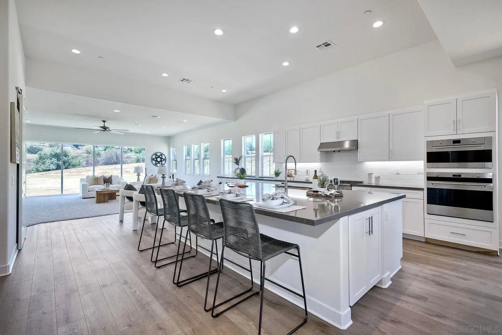 New Construction, ask about builder paid interest rate buydown starting at 4.5%, surrounded with panoramic views, set in the foothills of Valley Center on a new cul-de-sac, New Pointe Communities proudly presents this final series of single level estate homes presented on 2 acre plus elevated lots. This home is the plan 3, the largest model, a rare 5 bedroom plus bonus room. The great room features a fireplace and high ceilings, led lighting. Open concept living with a functional gourmet kitchen featuring white shaker cabinets and quartz countertops with generous center island and walk in pantry. An upgraded stainless steel appliance package, propane gas range and a built-in 48 inch GE Monogram Refrigerator/Freezer. Well appointed primary suite and master bath with large walk-in closet, dual vanities and a luxurious freestanding soaking tub, elegant standalone shower. Two secondary bedrooms with a shared full bath and two ensuite bedrooms with private full bathrooms. Functional outdoor entertainment space in the California patio outdoor sitting area accessed through gorgeous oversized sliding doors. Generous indoor laundry room with sink and storage, owned solar system included. Home includes a 1 year fit and finish warranty, No HOA room for RV, Boat and Trailer parking, very usable lots for an elaborate outdoor living space or swimming pool. Near local golf courses, wineries and casinos. Ask us about our current incentives!