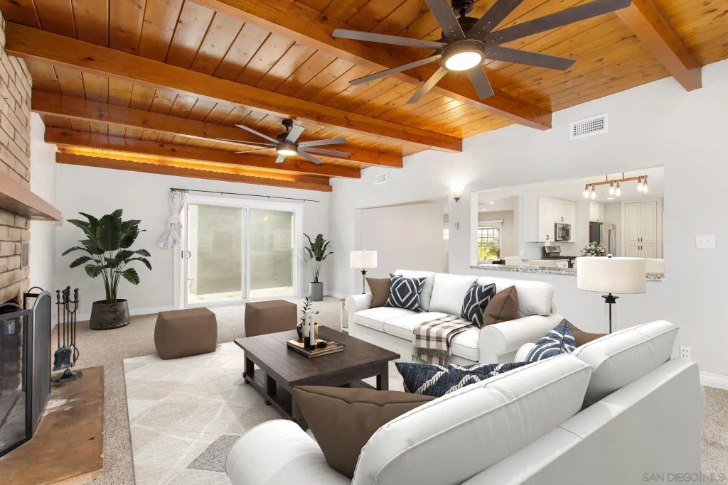 Charming Single-Story Home in Granite Hills! Move right into this beautifully updated 3-bedroom, 2-bath home featuring a spacious open floor plan, perfect for entertaining. The updated kitchen includes stainless steel appliances, granite countertops, and recessed lighting. Enjoy a huge family room with a cozy fireplace and wood beam ceilings. Additional highlights include dual-pane windows, leased solar, central A/C, and a large primary suite with two closets and dual sinks. Flooring is a mix of laminate and carpet throughout. Outside, enjoy a private backyard with fruit trees and a drought-tolerant landscaped front yard. Conveniently located near excellent schools, shopping, dining, parks, and Interstate 8—this Granite Hills gem is truly move-in ready!