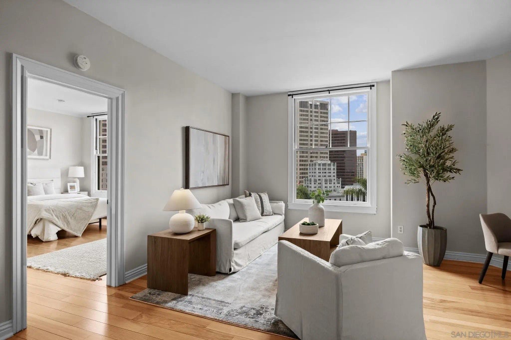 Step into history at the legendary El Cortez - one of San Diego’s crown jewels of vintage architecture. This light-filled unit offers sweeping city views, high ceilings, and original character. Historically designated, owners can apply & benefit from the Mills Act property tax reduction program & enjoy significant tax savings. Located in the heart of Cortez Hill, residents have access to two large terraces, fitness center, and pool. Additional amenities include secure parking & entry, EV charging, and a BBQ. With easy freeway access & just minutes to Little Italy, Balboa Park, Petco Park & more! Whether you're looking for a stylish home or an investment with iconic appeal, this condo delivers both charm and convenience in one unforgettable address.