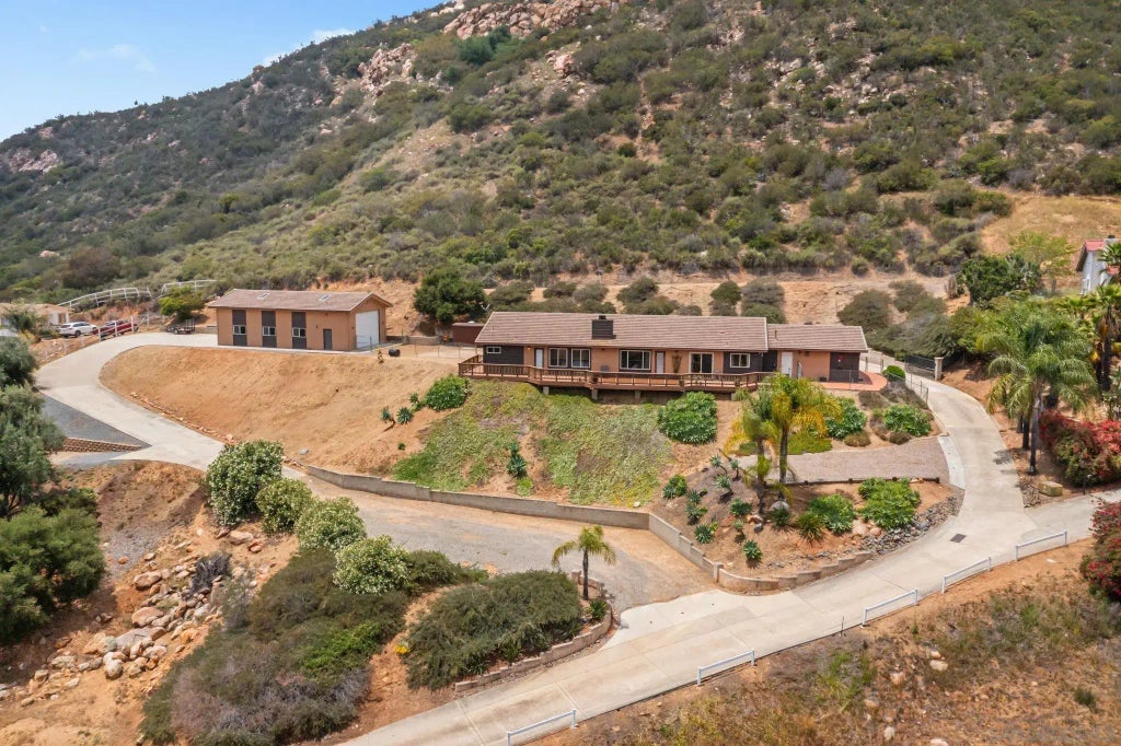 Set on two serene acres, this beautifully designed single-story home offers sweeping panoramic views and an incredible blend of comfort, functionality, and space. Thoughtfully customized with 4 bedrooms and 3 bathrooms, the property features an open-concept layout and a seamless connection to the outdoors, including a spacious composite deck perfect for taking in the natural surroundings. The living room is warm and inviting with exposed wood ceilings, abundant natural light, and a cozy fireplace insert. The updated kitchen includes granite countertops, a breakfast bar, and custom cabinetry. Throughout the home, you’ll find a mix of wood laminate and travertine flooring, recessed lighting, dual pane windows, and central heating and air. The primary suite offers a peaceful retreat with a walk-in closet and a spa-style bathroom featuring a tiled walk-in shower and dual vanity. One of the guest bathrooms includes a jetted tub—perfect for relaxing at the end of the day. A new water filtration and softener system has been added, enhancing every shower with softer water while protecting appliances and improving the taste and quality of water throughout the home. Step outside to enjoy a built-in BBQ, a covered patio, and an expansive backyard ideal for relaxing or entertaining. For car enthusiasts or those needing serious workspace, the property boasts a 1250 sq ft workshop with 13-foot ceilings, a professional-grade car lift, and drive-through roll-up doors—easily accommodating up to six vehicles.
