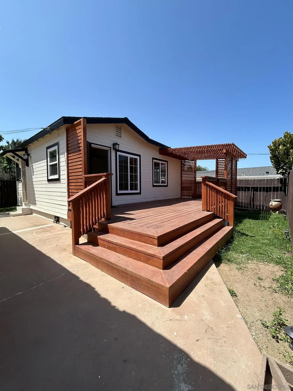 ADU for Rent in Chula Vista - Newly remodeled backhouse with a private deck and entry. The deck is 240 sqft. The rest of the unit is fully furnished and comes with essential starter supplies to make move in an easy process. New bathroom remodel, flooring, paint, plumbing, and newly built private deck. The property location is convenient for those relocating to San Diego. Across the street from Memorial Park which hosts Chula Vista's farmer's market. Downtown Third Avenue is 0.3 miles and a great location for multiple restaurants, cafes, breweries and a gym. Property is 1 mile from 5 freeway and a $18-$27 uber to gaslamp. The property comes with on-site washer and dryer that is located in the garage. Minimal storage space allowed in the garage as well to make your stay more comfy and convenient. 1 assigned parking in the driveway.