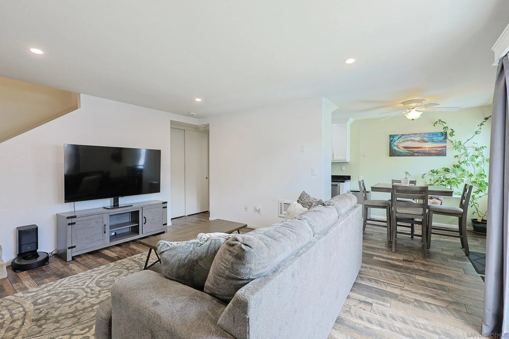 Welcome to the VA and FHA approved Allure condominiums nestled in the heart of Serra Mesa! This dual-level sleek condo unit lives like a townhome with natural light and an inviting layout. Featuring updated luxury vinyl plank flooring on the lower level, an efficiently appointed kitchen with a farm-style sink and a reverse osmosis water filtration system, extra interior storage, a designated outdoor private patio space, and so much more! The resort-like Allure community amenities include two pool/spas, a gym, BBQ areas, grassy spaces, multiple on-site laundry rooms, and quick access to freeways, Snapdragon Stadium, parks, shopping, dining, hiking and beyond! The convenient floorplan creates easy living and entertainment options, with a slider door to your patio space to invite the outdoors in! Boasting upgraded bathrooms on each level with a bathtub and shower option upstairs, larger closets, vaulted ceilings, and window shutters. Centrally located in the Serra Mesa community and perched just above the Mission Valley area, opportunity awaits you at 3454 Castle Glen Dr., #104!
