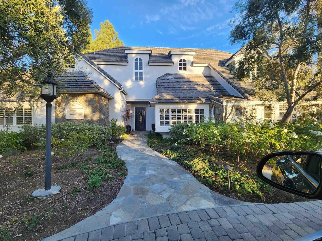 Rarely available home central to all in Solana Beach. Like living in the country yet close to golf, shops, restaurants and the beach. Over an acre of land with 5200+ sq. ft. County French home on 1st tee of Lomas Santa Fe County Club, plus detached 750 sq. ft. 2-bedroom, one bath guest house, spa, large garage (4-car) plus car port, several large patios, and lots of storage. House has solar and charger for EV. Solana Beach School district; San Dieguito High School district. Close to shopping, freeway, and beach. Walk to San Dieguito Park. Walk to Lomas Santa Fe Country Club through cart path under Lomas Santa Fe Drive. Main house has 6 bedrooms/6 baths plus powder room: first floor has spacious master suite with 2 walk-in closets and direct access to patios and spa. Additional large office/bedroom on first floor with access to side patio and separate full bath. Living room, 2 family rooms, dining room, eat-in kitchen, laundry room, powder room all on first floor. Main house has 4 bedrooms on second floor: 3 en suite bedrooms; 4th bedroom’s full bath is across the hall. Detached guest house has 2 bedrooms/offices with full bath, bar sink, mini-fridge and 2 separate entrances. All rooms have lots of natural light and LEDs throughout.
