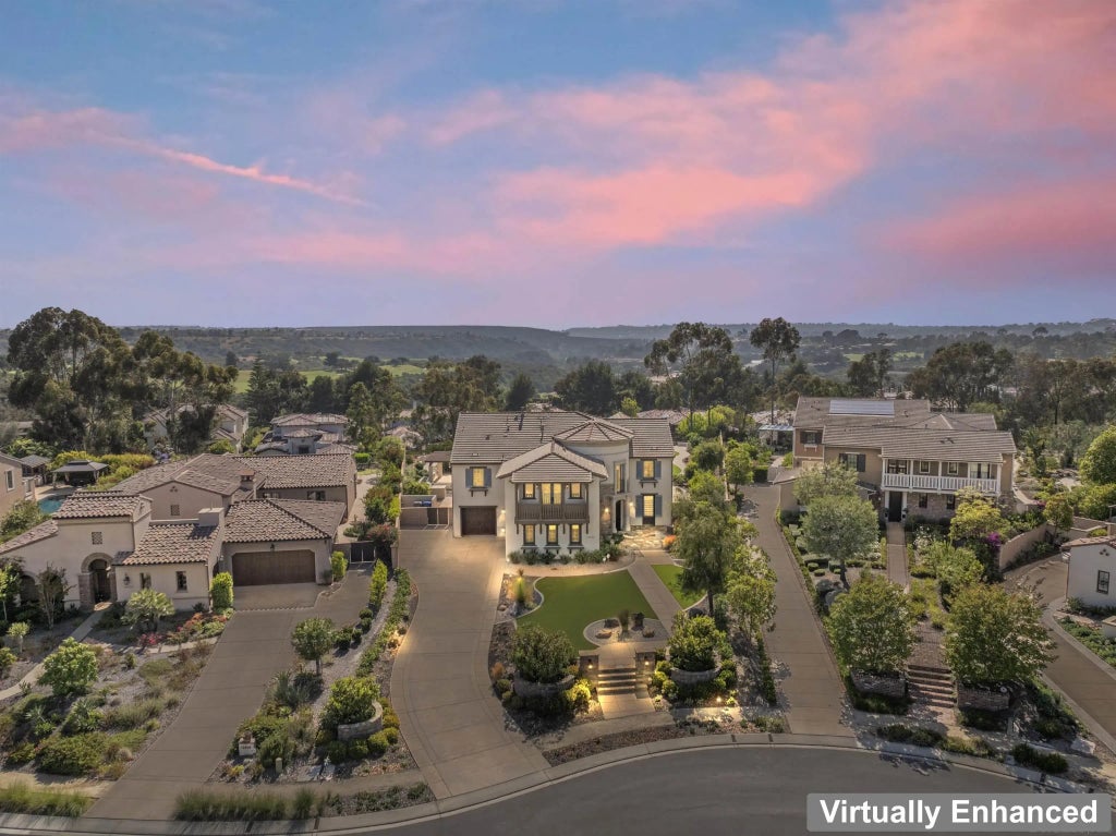 Stunning family estate, in the gated community of Alta Del Mar. Premier. 53 acre cul-de-sac lot with views of the Grand Del Mar Golf Club. Home offers timeless style, modern luxury, and eco-conscious living. Elegant interiors feature Santos Mahogany flooring, soaring ceilings, and fireplaces. Chef’s kitchen includes Wolf, Bosch, and Sub-Zero appliances with dual farmhouse sinks. A versatile layout with an upstairs bonus room, Jack-and-Jill bedrooms, and a private suite downstairs. Luxurious primary retreat offers a balcony, spa bath, and walk-in closet with dual-sided laundry chute.. Low-maintenance yard, featuring artificial turf, putting green, drought tolerant landscape, bbq bar & fire pit. Photovoltaic solar system, tankless water heaters, and EV charger, provides sustainable comfort. Experience refined indoor-outdoor living with resort views and ocean breezes. It is more than a residence, it’s a lifestyle of elegance, ease, and environmental consciousness!