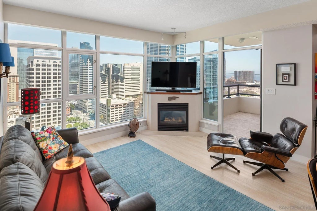 Enjoy spectacular panoramic views of majestic downtown San Diego from this 25th floor, 1 bedroom 1.5 bathroom gem. Features stainless steel appliances that include Dacor 4-burner gas range, Dacor microwave, and GE Monogram French door refrigerator. Fireplace, hard wood cabinetry, and granite countertops throughout. Steps away from the best downtown living has to offer, including the San Diego International Airport, Amtrak and Trolley.